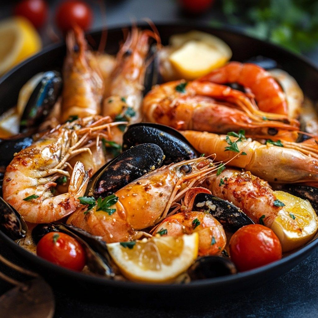 Plongez dans la tradition avec notre sauce feuille de manioc revisitée, généreusement garnie de fruits de mer du jour